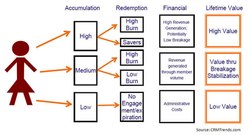 The operative question for any loyalty program manager is, what is the philosophy behind the program's operation. Is it being run at a break-even, loss or profit. Then the critical question becomes, given that philosophy, how much breakage is optimal? If breakage is too low, it could mean that your program lacks relevance (or will so, soon). If breakage is too high, you could be operating an unprofitable program. For retailers, breakage can run approximately 25% (meaning that 75% of all points are redeemed). Qantas Airlines has reported in the past that it's frequent flyer program has only 13% breakage (most airlines have a higher breakage). Redemption good. After all, redemption leads to lower churn - redeemers churn 8-20% less than non-redeemers - with multiple redeemers having the highest reduction in churn. The question is, 'what is the balance you need for a successful program?'